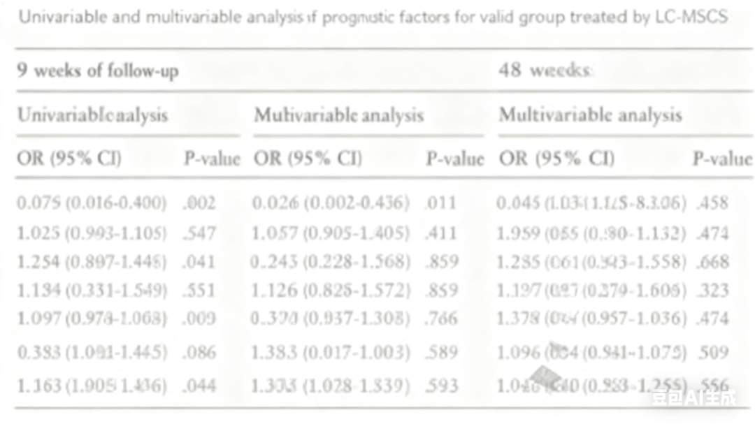 UC-MSCs治疗的有效组预后因素的单变量和多变量分析