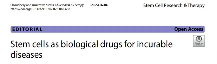 引言 若说 20 世纪医学的核心成就是化学药物,那么 21 世纪医疗的焦点,正逐渐向 “有生命的药物” 转移。它并非传统的胶囊或针剂,而是一类能 “感知身体信号” 的活细胞 —— 干细胞。 以往,神经不可再生、心脏难以修复、免疫紊乱无法逆转,这些曾是医学界的共识。但 2025 年最新的国际研究数据,正在逐一打破这些固有认知。干细胞疗法不仅能在多发性硬化症治疗中 “重置免疫系统”,更在心力衰竭、脊髓损伤、糖尿病等领域,展现出令人惊叹的组织修复能力。 2025 年 10 月 8 日世界干细胞日当天,国际期刊《Stem Cell Research & Therapy》发表了一篇引发全球同行广泛讨论的综述文章。